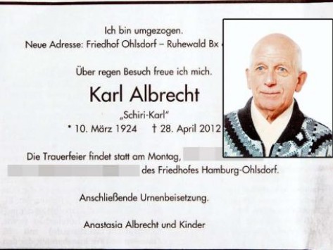 Σύμφωνα με την εφημερίδα Μπιλντ ο ηλικιωμένος είχε αφήσει οδηγίες στην οικογένειά του να δημοσιεύσει την αγγελία στην τοπική εφημερίδα Χαμπούργκερ Αμπεντμπλατ.